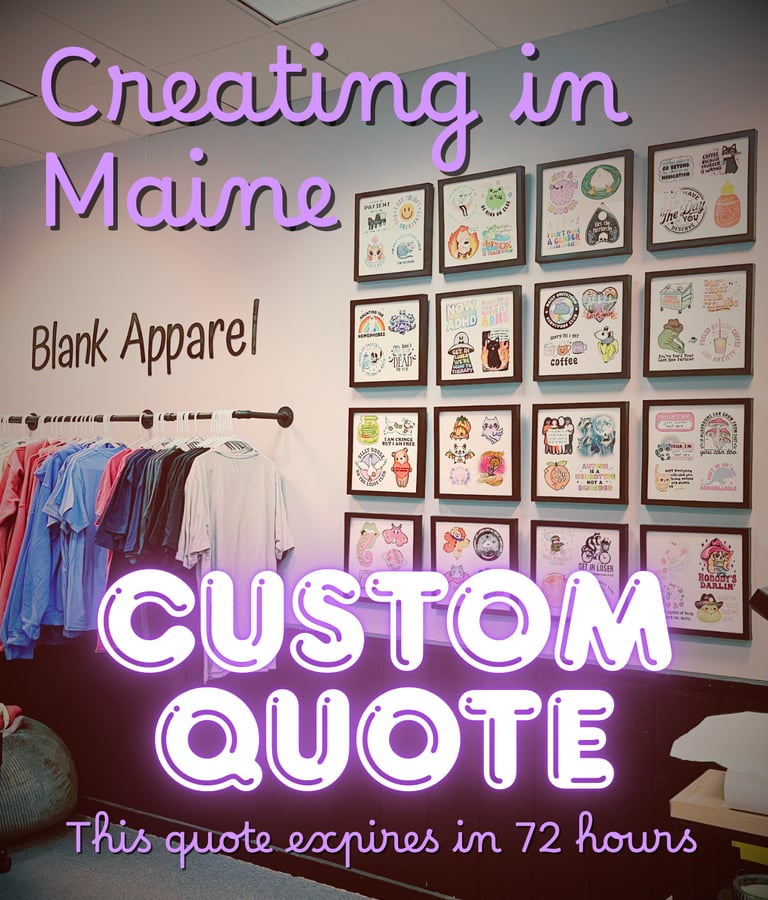 Can't find what you are looking for? We have a wide variety of customizable gifts as well! Click the photo of our blank apparel wall to send us an email for a custom quote! Scroll down to read more about our services.