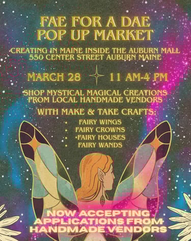 Thank you for your interest in participating as a handmade vendor at our Fae for a Dae pop up market at Creating in Maine!